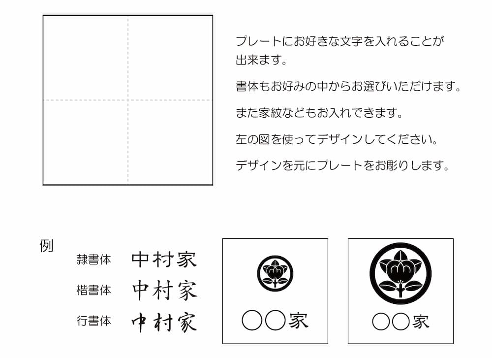 ※特殊プレート作成希望の方と、追加字彫等を希望の方は別途お見積り致します。