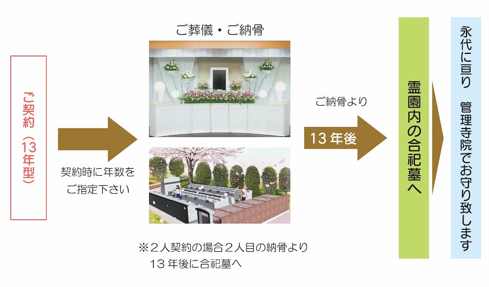 桜川市樹木葬 さくらほーる西小塙では「13年供養型~」を採用しています。